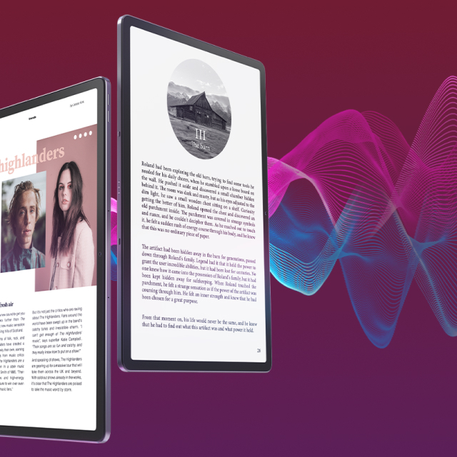 Залишай позаду реальність і занурюйся у чарівні світи на сторінках улюблених книг. Насолоджуйся читанням і отримай покращений досвід із чистим просторовим звучанням, настроюванням кольорів і дисплеєм, який підлаштовується під рівень освітлення навколишнього простору.